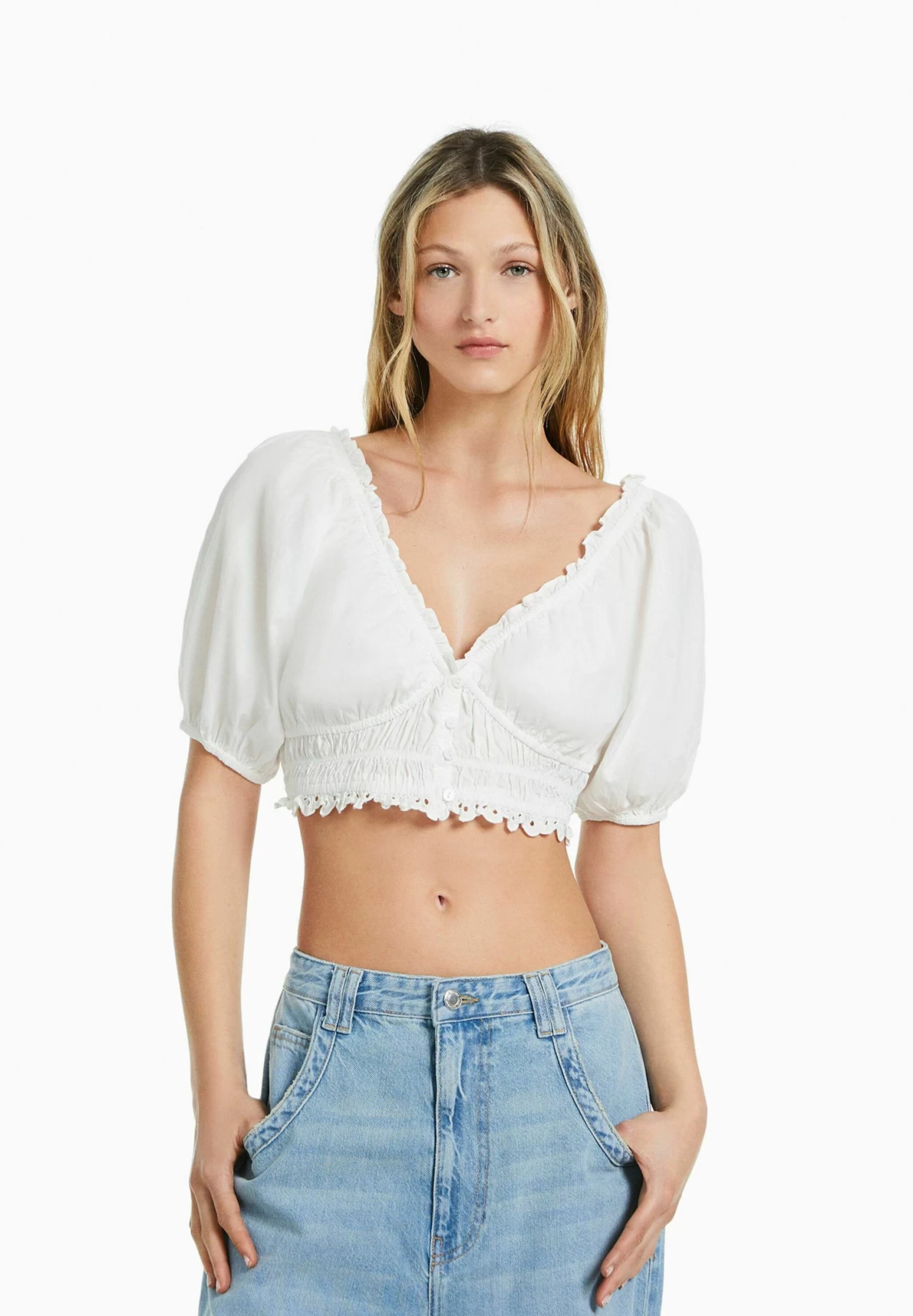 Wees de eerste om “BERSHKA Short Sleeve With Swiss Embroidery And Shirred Detail – Blouse – Off White” te beoordelen Reactie annuleren